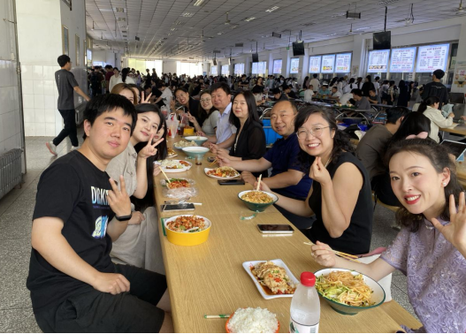 6月17日中午,副校长韩辉深入学生餐厅,与beat365官网2024届毕业生共进午餐,寄语送别。beat365官网党委书记王卫锋、院长马东俊、副书记贾菁、副院长孙桂杰,学院学工办、分团委和毕业生辅导员老师一同参加。