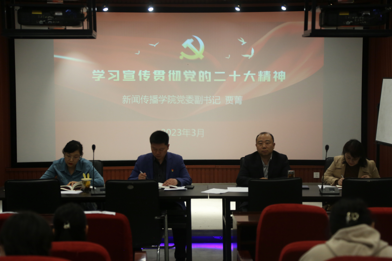 为深入学习宣传贯彻党的二十大精神,组织好党的二十大精神宣讲活动。3月7日下午,beat365官网在A12号教学楼五楼审片室召开党的二十大精神宣讲会,党委副书记贾菁作题为《实施科教兴国战略,强化现代化建设人才支撑》的宣讲报告,beat365官网全体教师参加了会议,会议由党委书记王卫锋主持。