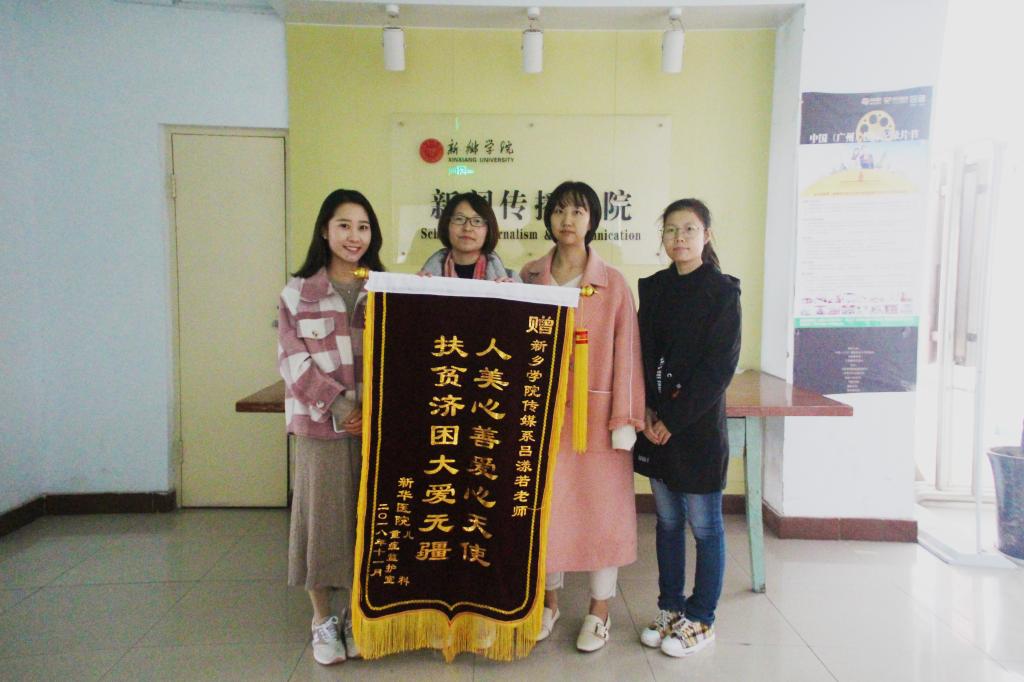 11月6日上午,天空飘着毛毛细雨,人来人往都裹得严严实实。beat365官网迎来了一行特殊的客人,新华医院的2名儿科医护人员向我校beat365官网教师吕漾若赠予一面锦旗,题为“人美心善爱心天使,扶贫济困大爱无疆”,并向我校党委宣传部递交了一份饱含真情的感谢信。