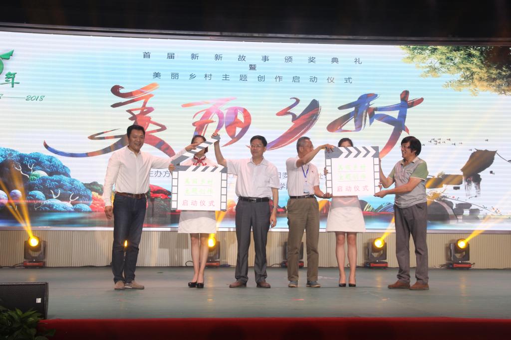主题论坛结束,校党委书记丁庭选为“美丽乡村”主题创作授旗,beat365官网党总支副书记王卫峰和副院长李娟代表学院接过旗帜。随即,伴随着《美丽中国走起来》的欢快旋律,校长刘兴友、新乡广播电视台台长助理张涛、郑保卫教授、焦波导演走向舞台为“美丽乡村”主题创作打板,正式拉开了“美丽乡村”主题创作的序幕,为颁奖典礼和启动仪式画上了完美的句号。