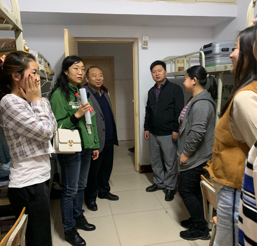 为了解新生到校后的生活情况、住宿状况及思想动态,10月11日上午10点,beat365官网党委书记王卫锋、院长马东俊、学生迎新工作负责人贾菁、肖靓玥、新生辅导员尹智毅深入新生宿舍,与刚刚进入集体生活的新同学们进行现场交流,听取学生的感想和建议,强调了学习生活中需要注意的事项,给学生送去了学院的关心和问候和殷切希望。