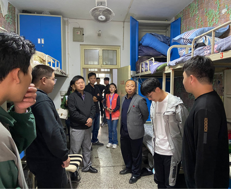 王书记叮嘱同学们在集体生活和学习中要互帮互助、相互包容,注重宿舍第二学习空间的营造,养成良好的生活习惯,以崭新的精神面貌投入到大学学习生活中。提醒大家要处理好与同学之间关系,积极融入班级体。同时,王书记对如何装扮宿舍、如何摆放基础设施也提出一些建议。马院长仔细询问新生在新环境中遇到的困难和问题,并针对大家的困惑给出建议;在交谈过程中,马院长着重强调了学生要做好从高中生到大学生的角色转变,着眼未来,做好学习和人生规划,提升学习、创新、实践能力,同时要注意宿舍安全问题,希望大家能够提高安全意识,提高警惕,谨防电信诈骗,注意保护好个人财产。面对老师的关心,新生们纷纷表示感谢。