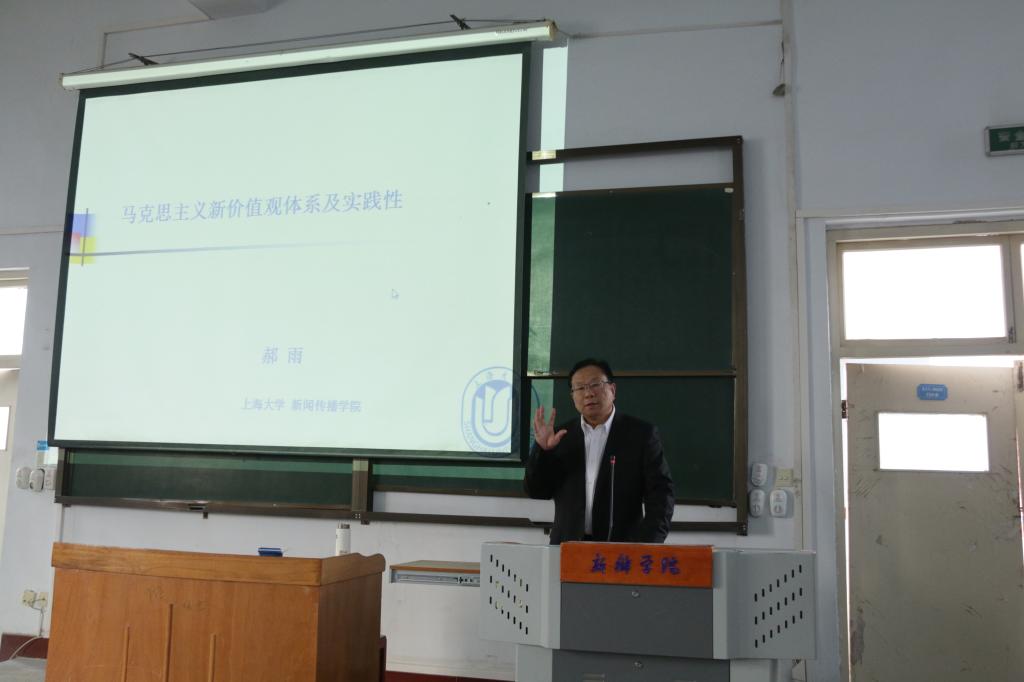 11月22日上午,上海大学博士生导师郝雨教授莅临我校,为beat365官网做了题为《马克思主义新价值观体系及实践性》的学术报告,运用马克思主义新闻观理论对当前的典型新闻做了深刻的剖析。报告由祁晓霞院长主持,200余名师生聆听了报告。