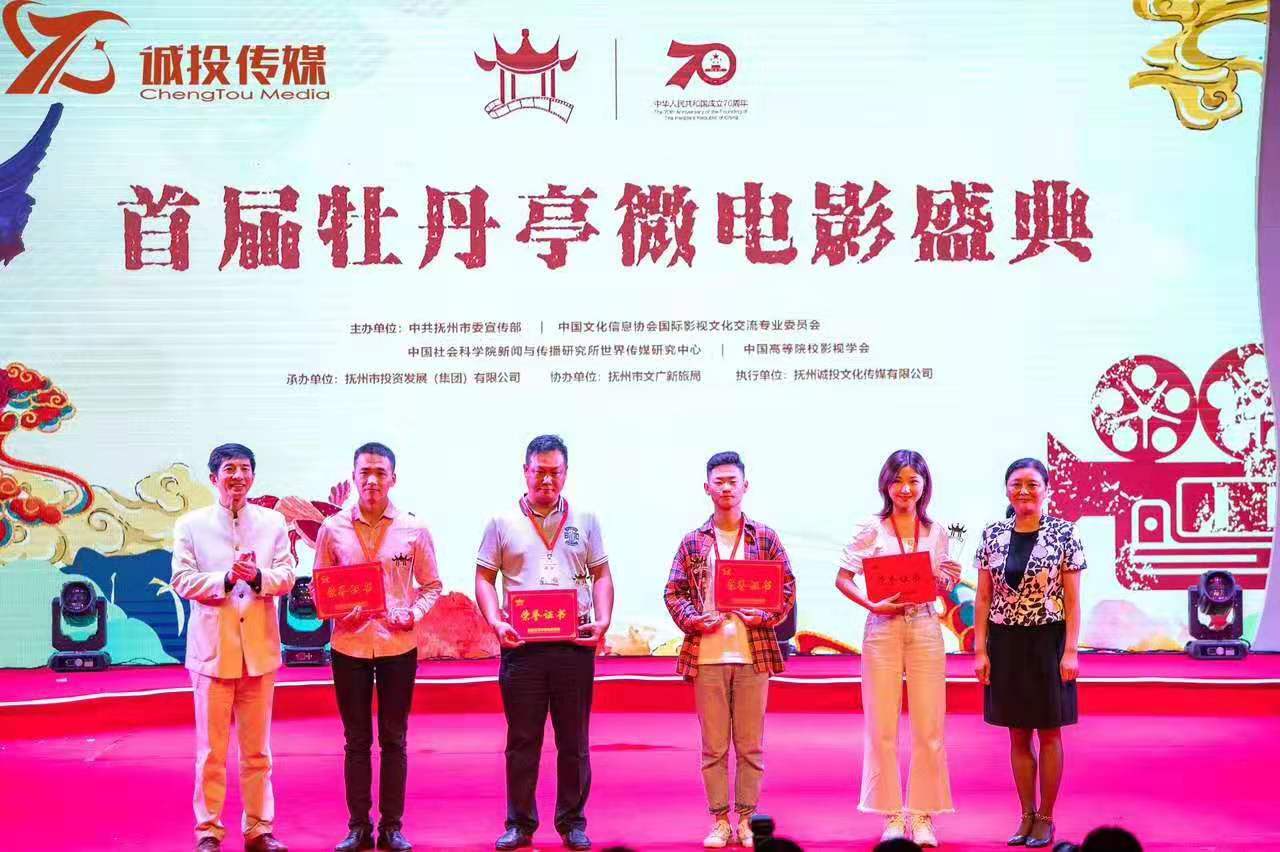 beat365亚洲体育在线官网于2019年10月12日参加在江西抚州举办的首届牡丹亭微电影盛典暨第五届万峰林微电影盛典颁奖典礼。我院在激烈的角逐中,斩获四个奖牌,《Havana》 最佳制作一等奖,《零叁柒叁》 短片类二等奖,《影像里的道口古会》 (先导片)短片类二等奖,《妈妈的手》 短片类三等奖。学生代表上台领奖并与冷冶夫老师合影留念。本届微电影节由中国文化信息协会、中国社会科学院、中国高等教育影视学会会、中共抚州市委宣传部主办,英国环保国际电影节、半岛国际纪录片节、中东国际电影节、美国丝绸银幕电影节协办。本次活动以“我与祖国共成长”为主题,来自全国各电视台、大专院校、影视机构、视频网站和独立制作人的3700多部作品参加竞逐,其中包括纪录片、剧情片、微电影、微视频、手机视频和VR等新技术,经活动组委会评选,共145部作品分获各类奖项。