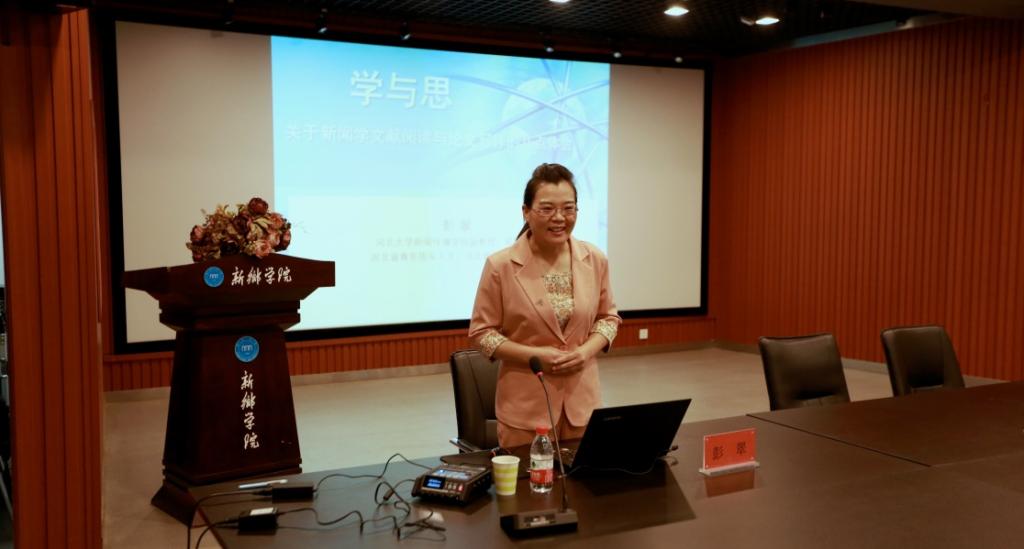 9月22日下午,风和日丽,秋高气爽,河北大学研究生导师彭翠博士来到beat365官网开展交流,进行名为《学与思——关于新闻学专业文献阅读与论文写作的几点体会》专题讲座。讲座由beat365官网院长马东俊主持,副院长聂绛雯及新闻学专业师生参与讨论。