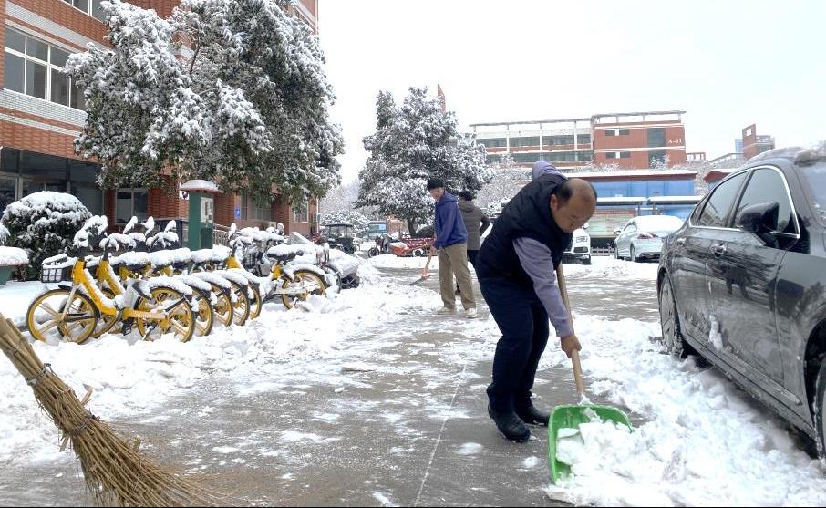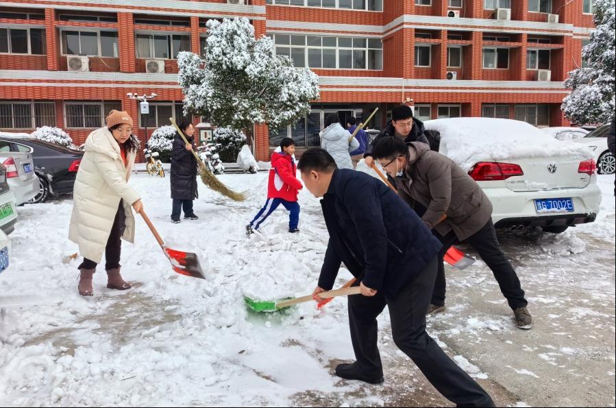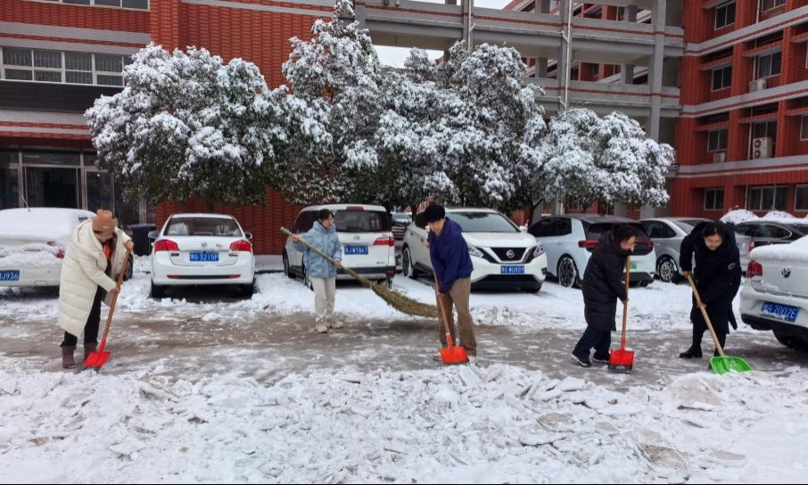 1月16日早上,beat365官网分工会组织扫雪除冰工作,快速高效清除教学楼周边积雪,确保校园道路和教学区域的安全通行。