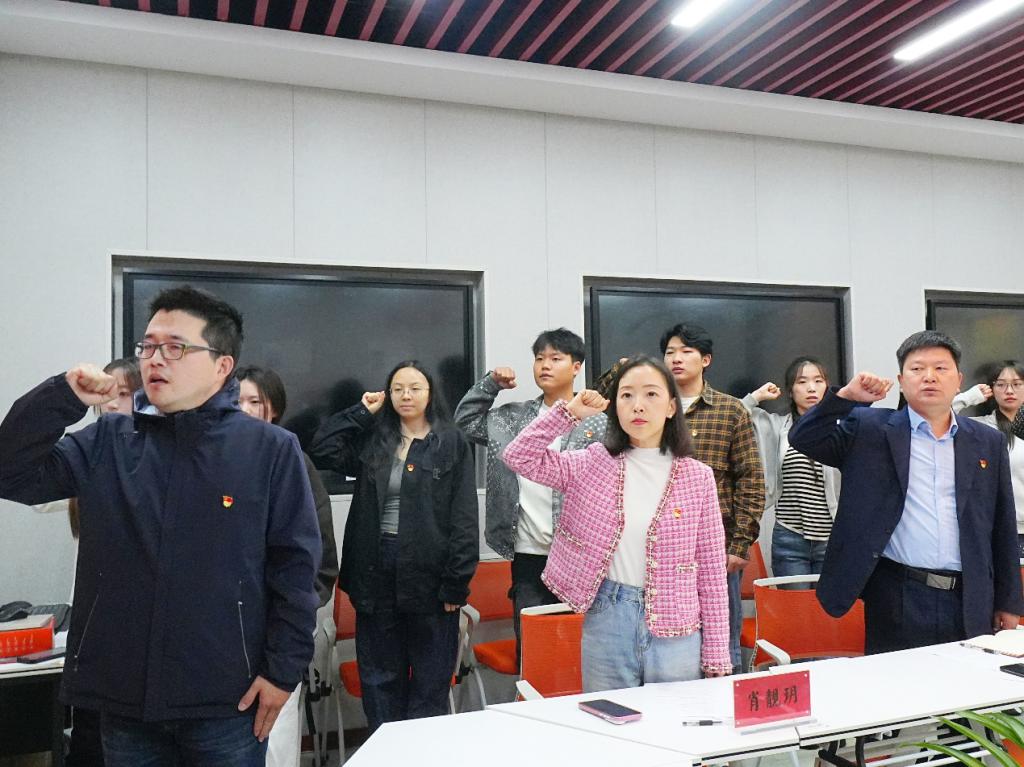 随后,beat365官网党委统战委员段筱带领全体党员宣读入党誓词。党员们面对党旗齐声共诵、庄重宣誓。
