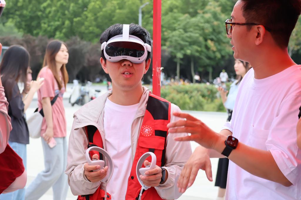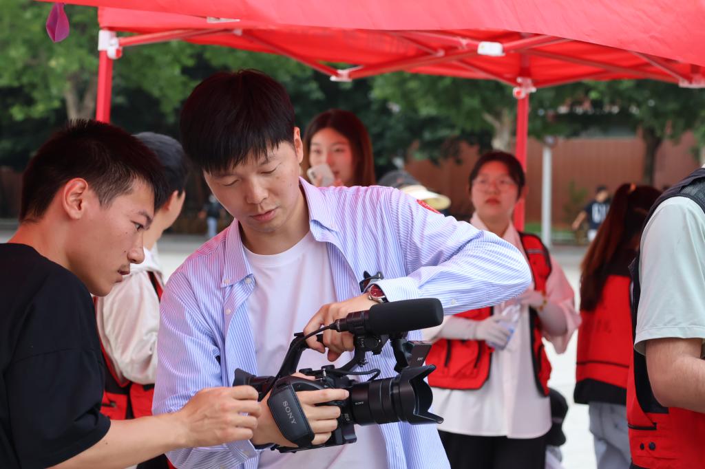 本次主题实践活动分为“中华优秀传统文化宝贵资源展示传播区”“融合媒体技术体验区”“文化创新实践互动区”三个板块。在展示传播区,紧扣非物质文化遗产保护曲艺、中国红色革命文化资源、中华医药文化、饮食文化等主题,播放新乡学院大学生创作并获得国家级、省部级奖励的高水平视频、H5融媒作品;师生分享创作思路、实践路径、传播效果;音视频多维采集、融媒科技、智能互动、光影变换等相关企业从技术支持角度展示了文化题材作品的呈现技术趋势和特色实现方式。在融合媒体技术体验区,学生们可以近距离感受现代融媒技术带来的一次采集、多元生成、多渠道发布的文化作品传播过程,动手操控多讯道视频转播硬件、操作网络新媒体直播软件、体验文化主播的工作场景。在“文化创新实践互动区”,学生们可以在现场使用无人机、超高速摄影机、斯坦尼康稳定器等设备,将自己拍摄作品即时打印、采集的影像素材一键成片,通过VR设备欣赏自己创作的文化作品。虽然活动当天气温比较高,但是活动现场气氛更加热烈,老师、同学们结合文化传承与发展话题,如何选择文化项目如何跨专业组队竞赛,如何掌握新技术手段、如何高质量实践创新等方面进行了深入探讨和交流。本次活动的成功举办,展现了科技与文化的完美融合,也体现了多元单位的协作精神和创新能力,既丰富了校园文化生活,又为未来文化传承和科技发展方向进行了有益的探索。